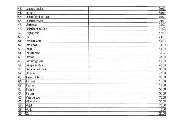 În tabelul următor aflați cum au fost repartizați banii de către CJ Hunedoara.