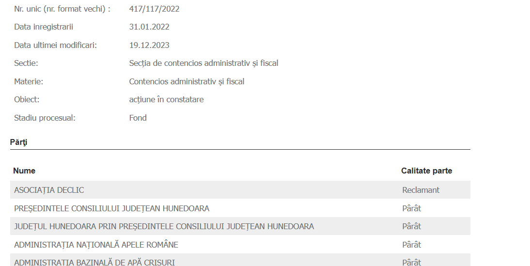Afirmația ridică însă semne de întrebare. Acțiunea în instanță inițiată de Asociația Declic a fost înregistrată pe rolul instanței la data de 31 ianuarie 2022, în timp ce recepția tehnică a corpului barajului a avut loc ulterior, în data de 31 martie 2022, în prezența ministrului Mediului de la acea vreme, Tánczos Barna. În aceste condiții, rămâne de clarificat dacă directorul general al instituției a fost dezinformat sau dacă încearcă să acopere eventuale erori administrative ale subordonaților săi.