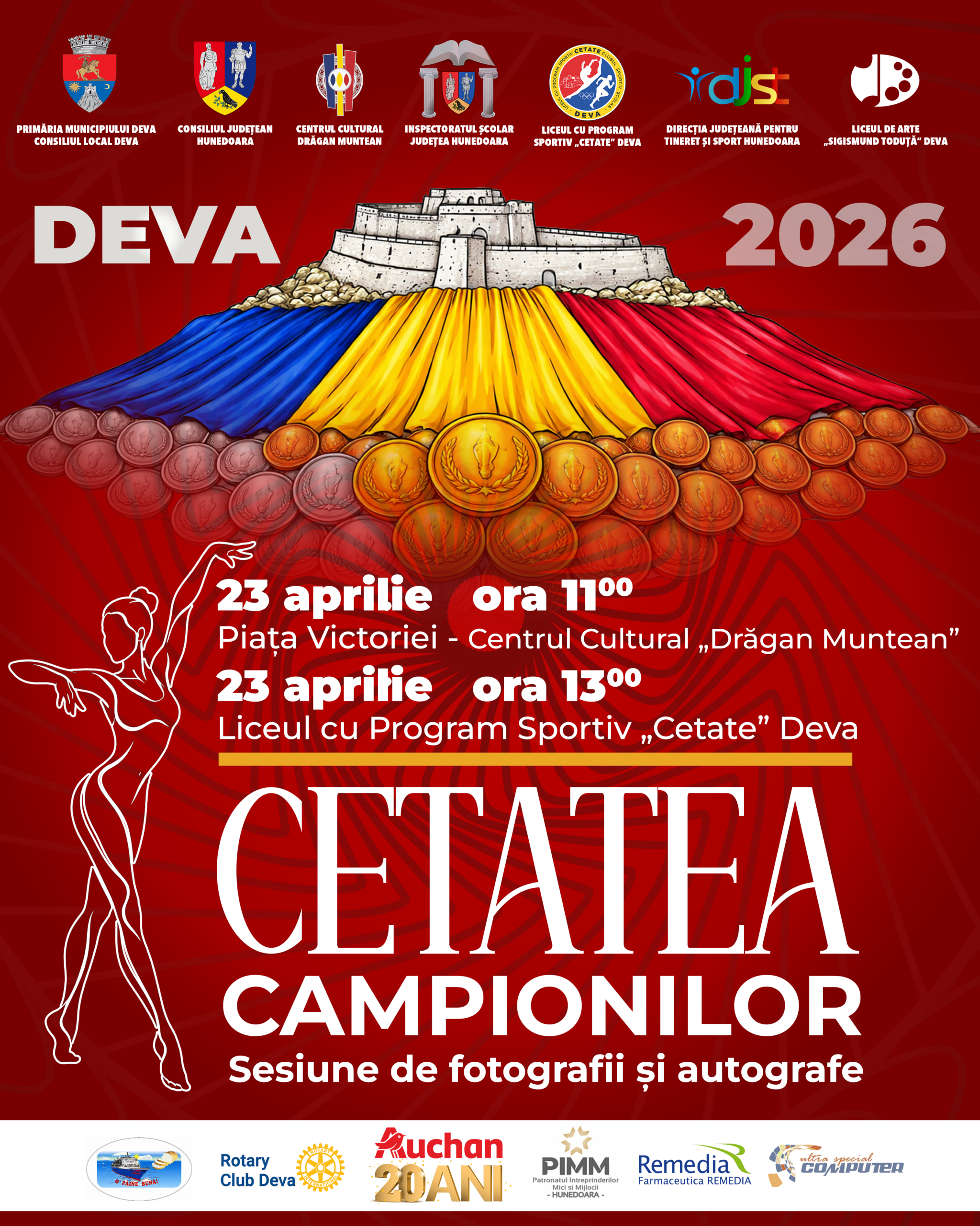 Municipiul Deva devine, joi, 23 aprilie 2026, gazda unui eveniment de excepție dedicat performanței și valorilor sportului românesc – „Cetatea Campionilor”, o întâlnire specială între marile gimnaste ale României și public.
